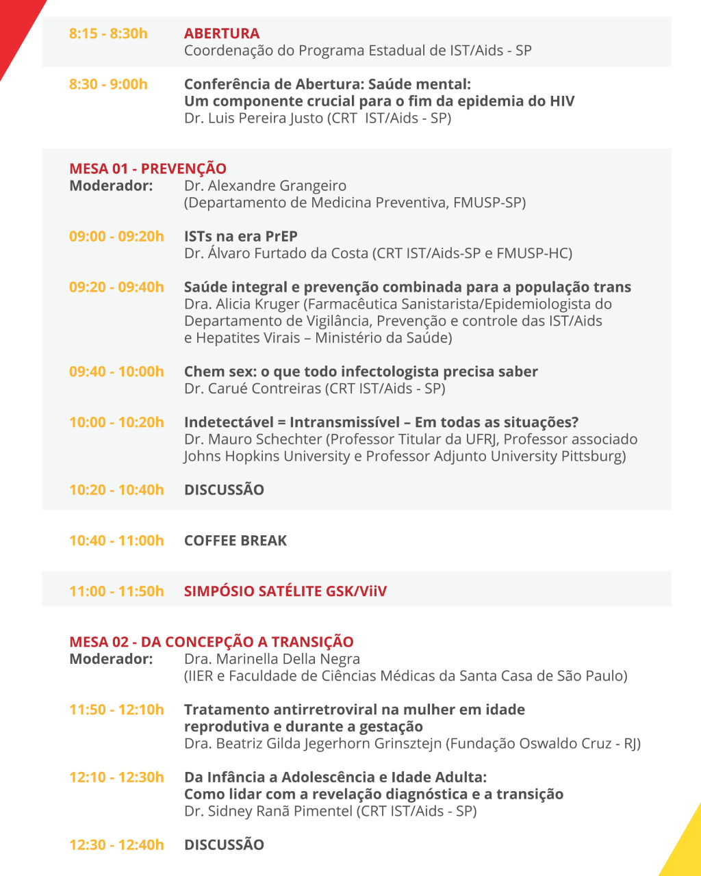 15h00- PrEP, PEP e estigma: LGBT, juventude, pessoas usuárias de drogas e trabalhadores sexuais;