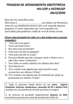 ![]() Triagem de Atendimento em Obstetrícia - HU-USP e FCFMUSP - abril de 2020 |