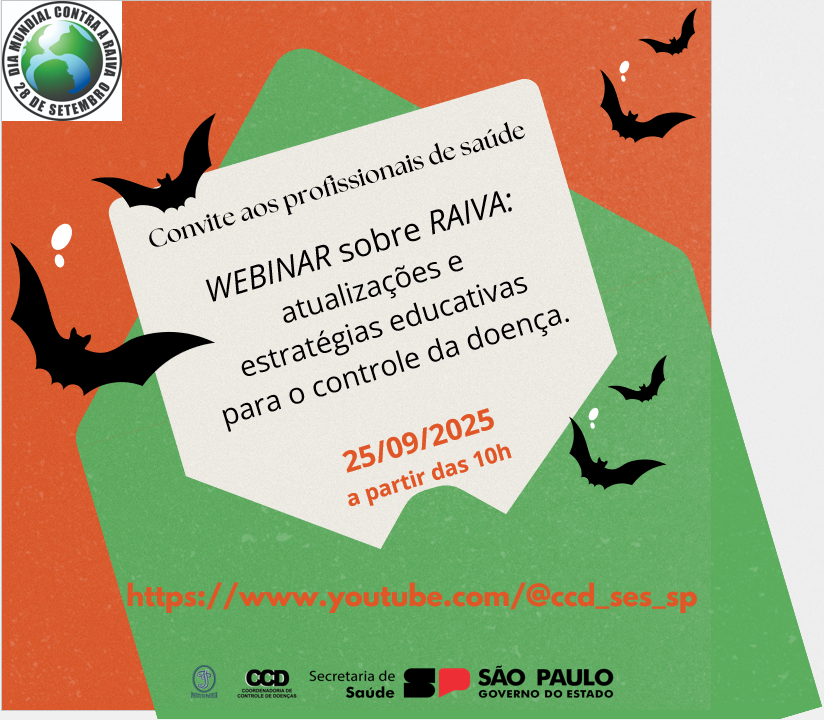 O Instituto Pasteur convida todos os profissionais de saúde para participar da webinar "Raiva: atualizações e estratégias educativas para o controle da doença", que será realizada no dia 25 de setembro de 2025, a partir das 10h. |