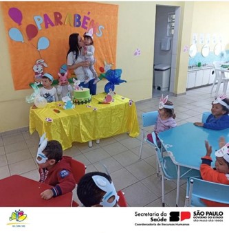 Para finalizar, houve a comemoração dos aniversariantes do mês com o tema "Páscoa".
