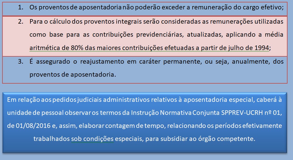 CÁLCULO E REAJUSTAMENTO DOS PROVENTOS DE APOSENTADORIA ESPECIAL Para o cálculo e Reajustamento dos Proventos de Aposentadoria Especial (Ambiente Insalubre) será aplicado o disposto nos §§ 2º, 3º, 8º e 17, do artigo 40, da Constituição Federal: