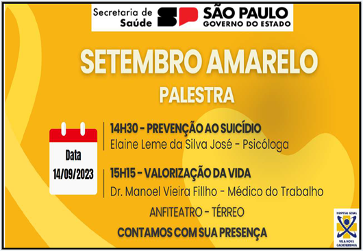 Neste mês de setembro, diversas unidades da Secretaria de Estado da Saúde de São Paulo estão realizando ações em atenção à Campanha Setembro Amarelo, que promove a conscientização a respeito da prevenção ao suicídio.